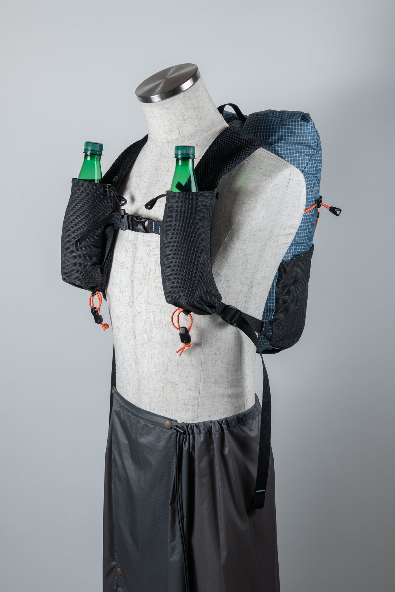 ショルダーポケットとボトムポケットによってザックを下ろすことなく飲食物の補給が可能。
