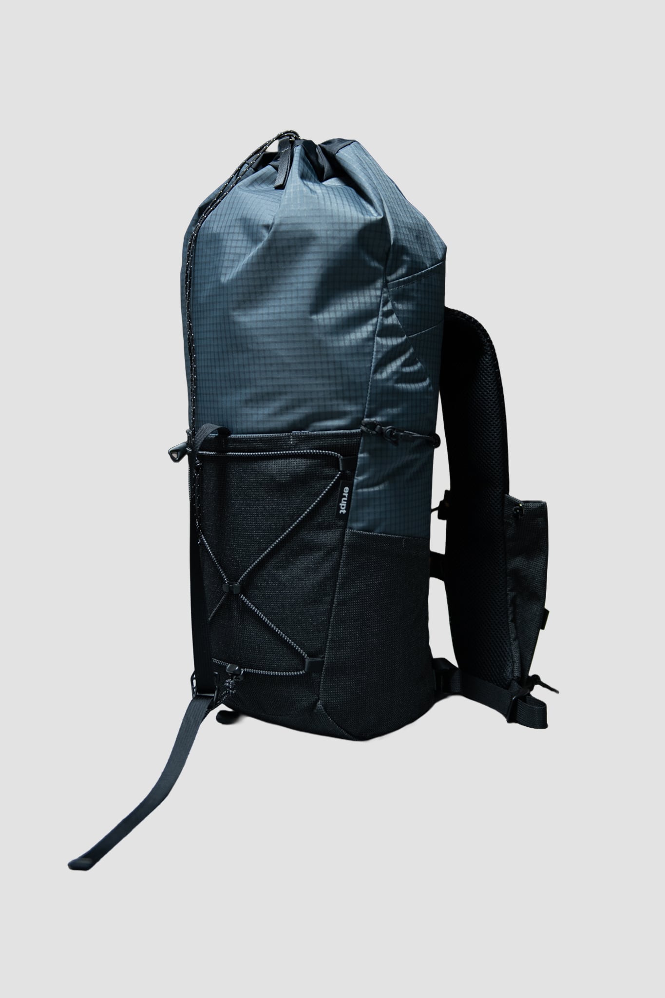 ショルダーのストレッチメッシュのポケットは、コードを締め上げることでボトルが抜け落ちることを防ぐ。